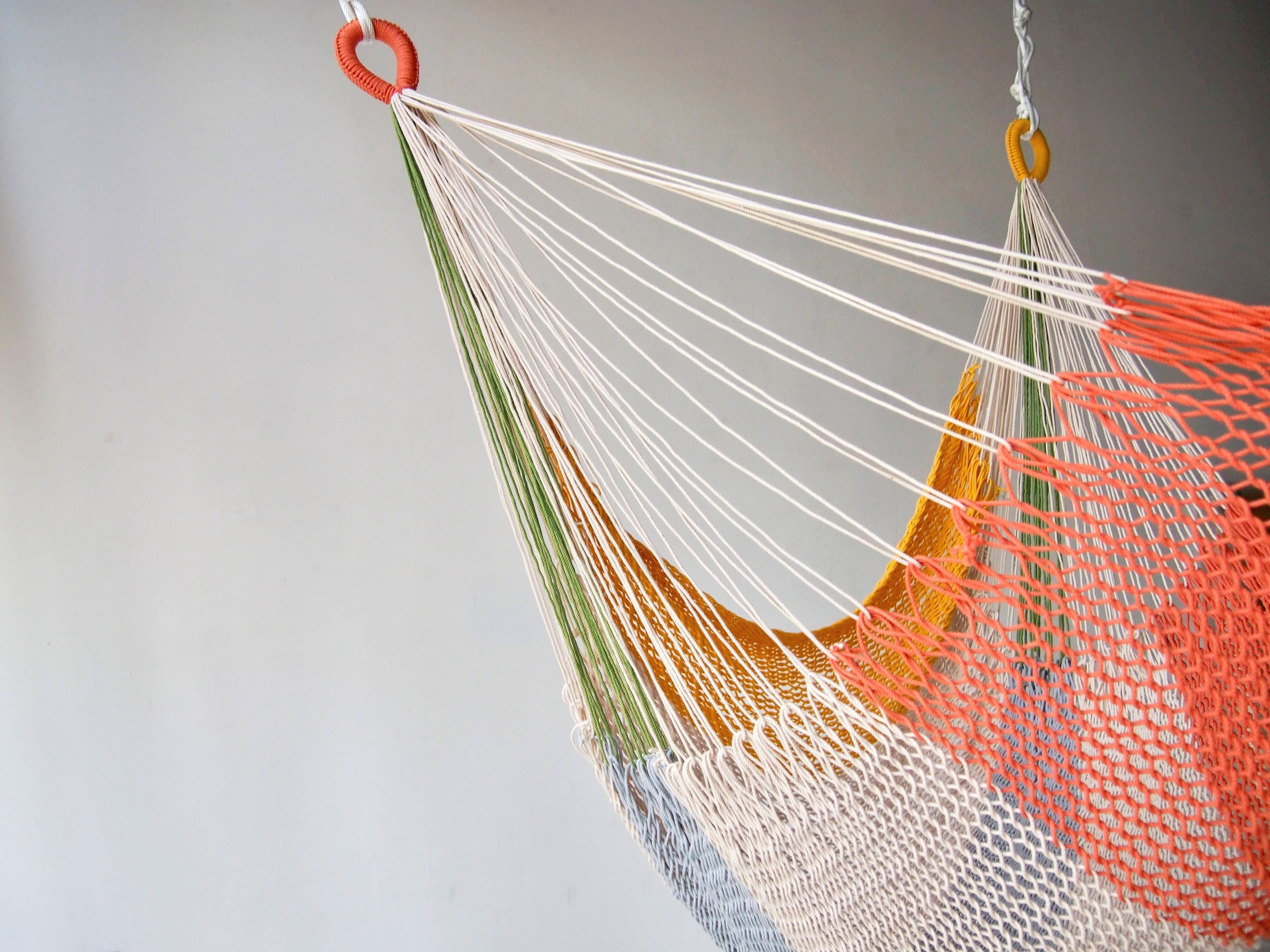 「すっぽりソファハンモック【Sunny Flower】」は、コットン100%の柔らかな国産素材で作られた、全身を優しく包み込むソファ型のハンモックです。