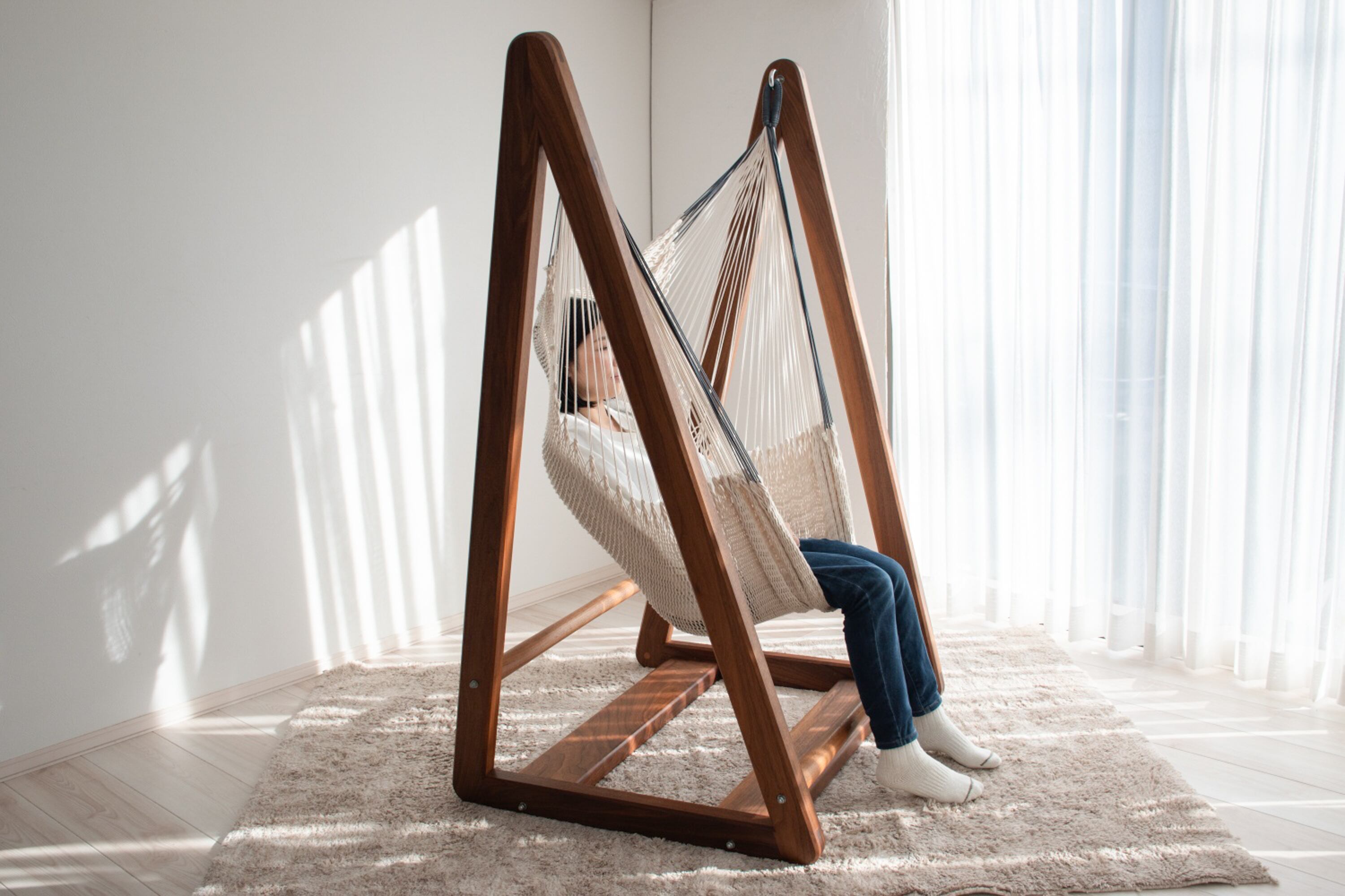 「すっぽりソファハンモック【Hawaii】」は、コットン100%の柔らかな国産素材で作られた、全身を優しく包み込むソファ型のハンモックです。